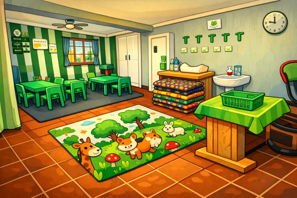 Our Green Class caters for toddlers aged 18 months to 2 years (potty-trained). Each child is provided with their own mattress and snugbug, along with a daily record book to keep families updated.